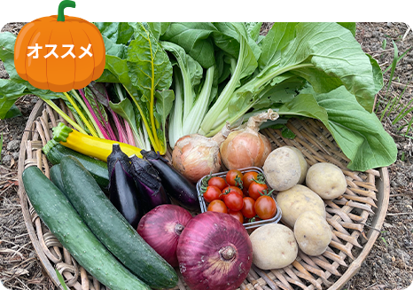 良質な水・土・空気の揃う里山で育った、旬の野菜をセットで販売しています。